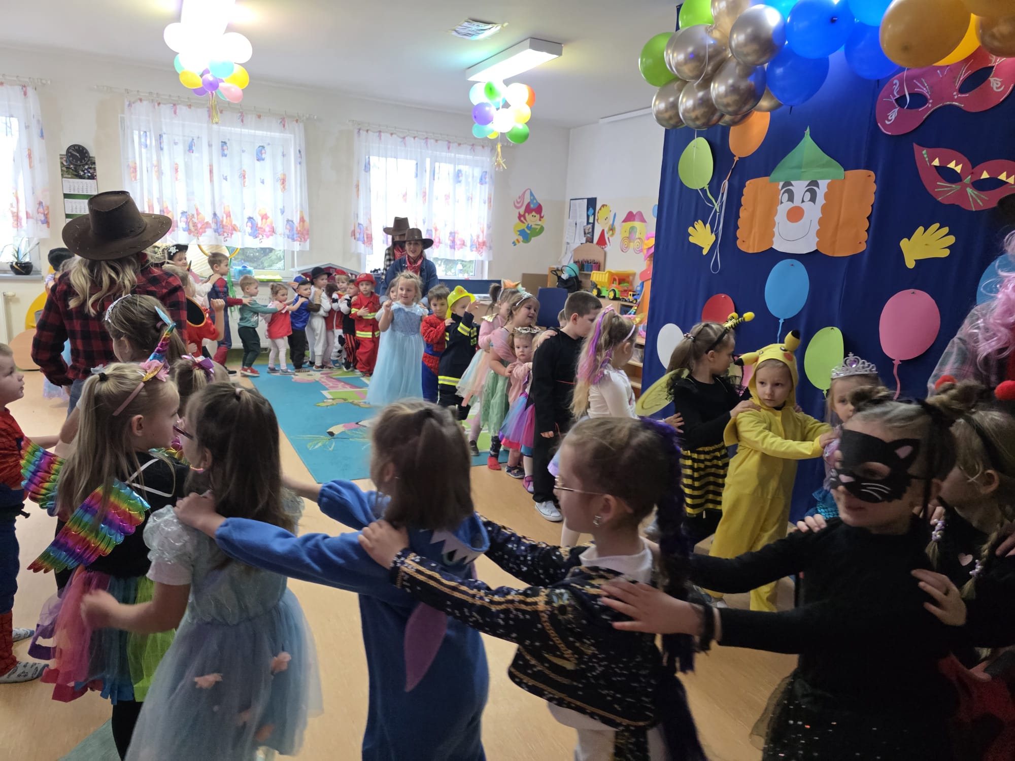 W naszym przedszkolu odbył sie wesoły bal karnawałowy. Dzieci przyszły przebrane w kolorowe i pomysłowe stroje, a sala była pieknie udekorowana. Podczas balu nie zabrakło tańców, muzyki oraz wspólnych zabaw ruchowych, które sprawiły wiele radości. To był wyjątkowy dzień.