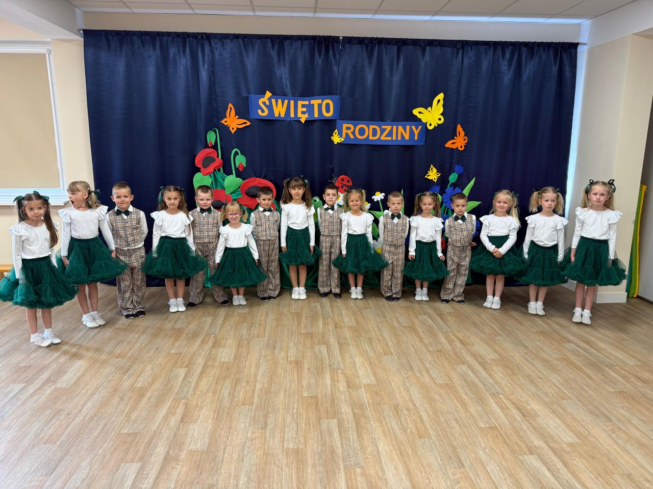 W dniu 23.05.2025 r. świętowaliśmy w przedszkolu dzień najważniejszych dla nas osób – Dzień Mamy i Taty. Z tej okazji dzieci zaprezentowały się przed rodzicami, którzy mogli wysłuchać wierszy, piosenek, a także zobaczyć tańce. Dzieci chcąc sprawić niespodziankę swoim rodzicom przygotowały własnoręcznie wykonane laurki.